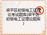 - 梁平区初级电工证理论考试题库(梁平区初级电工证理论题库) 2025年12月15日