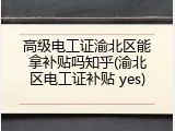 高级电工证渝北区能拿补贴吗知乎(渝北区电工证补贴 yes)