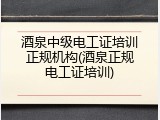 - 酒泉中级电工证培训正规机构(酒泉正规电工证培训) 2025年12月15日