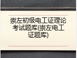 - 崇左初级电工证理论考试题库(崇左电工证题库) 2025年12月15日
