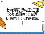 - 七台河初级电工证理论考试题库(七台河初级电工证理论题库) 2025年12月15日