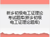 - 新乡初级电工证理论考试题库(新乡初级电工证理论题库) 2025年12月15日