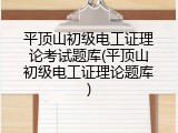 - 平顶山初级电工证理论考试题库(平顶山初级电工证理论题库) 2025年12月15日