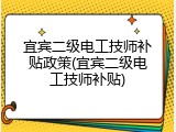 - 宜宾二级电工技师补贴政策(宜宾二级电工技师补贴) 2025年12月14日
