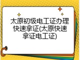 - 太原初级电工证办理快速拿证(太原快速拿证电工证) 2025年12月14日