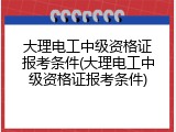 - 大理电工中级资格证报考条件(大理电工中级资格证报考条件) 2025年12月14日