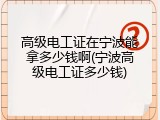 高级电工证在宁波能拿多少钱啊(宁波高级电工证多少钱)